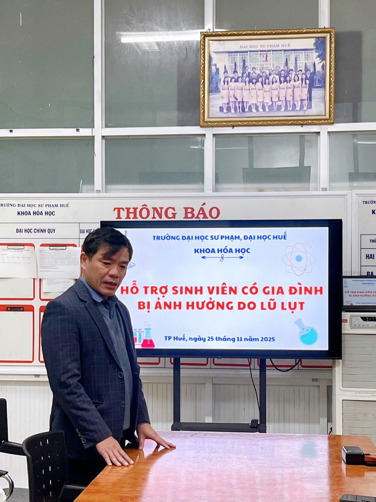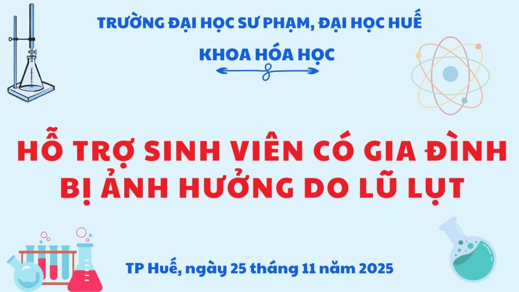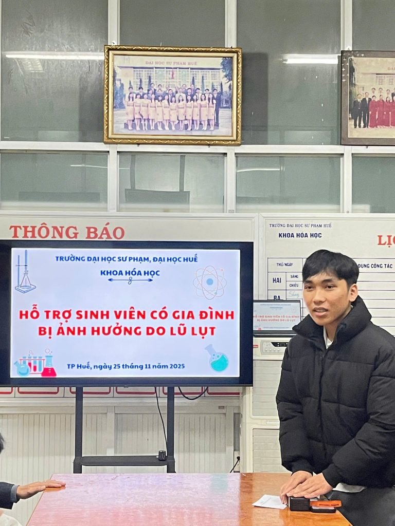 Sáng ngày 25 tháng 11, Khoa Hoá học đã trao quà hỗ trợ cho các sinh viên đến từ các tỉnh Nam Trung Bộ có gia đình bị ảnh hưởng nặng nề trong đợt mưa lũ lịch sử vừa qua.